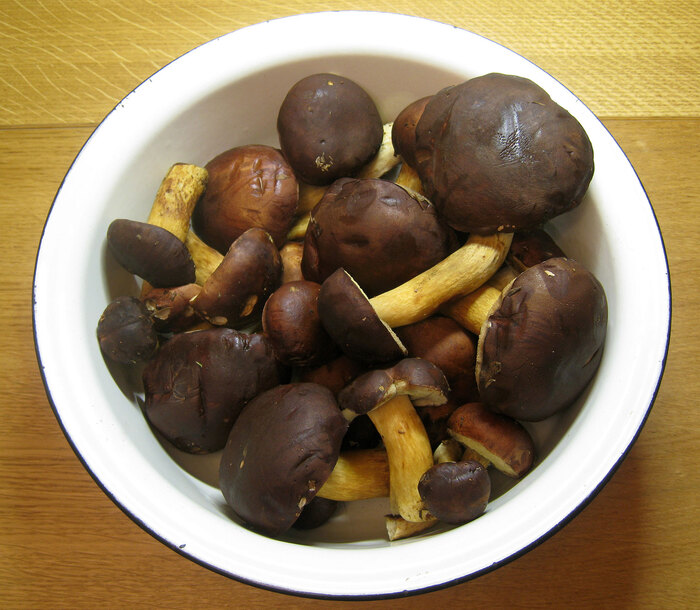 Гриб этот мне нравится ничуть не меньше белого, как внешне, так и по вкусовым качествам. Он точно так же универсален в кулинарном плане — можно жарить, варить, сушить и мариновать. Никакой предварительной обработки кроме мытья польский гриб не требует. Ну а коли погода за окном однозначно намекает, что свежих грибов в ближайшее время поесть вряд ли придётся, имеет смысл отметить завершение сезона наваристым супом.