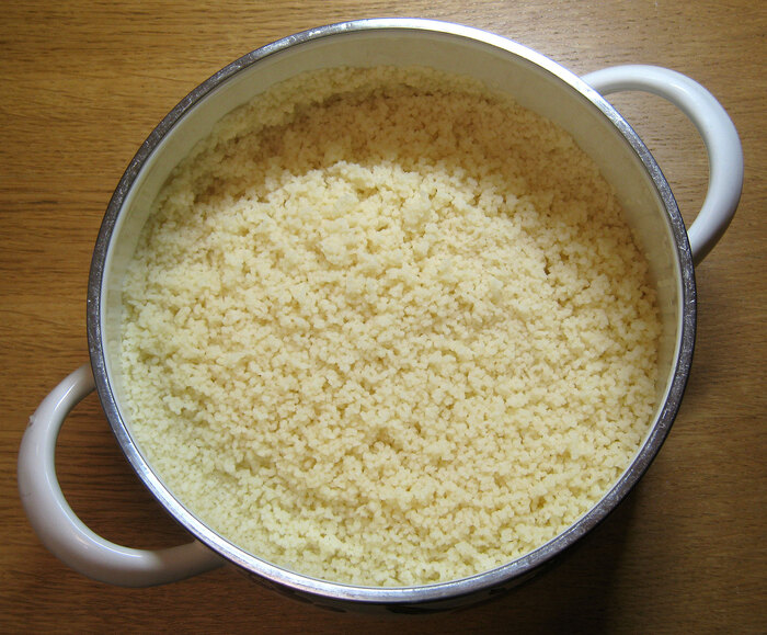 Кускус - старинное берберское блюдо, очень популярное в Тунисе, Алжире и Ливии. Название вероятнее всего происходит от арабского слова kaskasa, что означает «растереть в мелкие кусочки». Кускус и правда похож на мелкие шарики. Сейчас его готовят из манки, крупно перемолотой пшеницы, но исторически его делали из проса, которое в Африке пользуется большей популярностью.