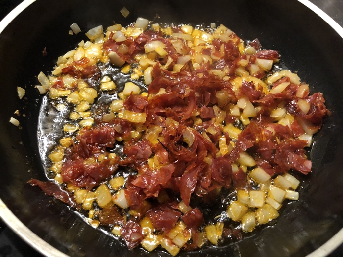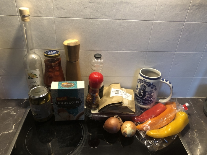 В 2015 году были мы у наших друзей на свадьбе в Мадриде. И там была вся многочисленная родня мужа-испанца, которая старалась познакомиться с каждым. Прознав, что я люблю готовить, они стали накидывать свои рецепты, которые я даже не запомнил, а вот какой-то троюродный дядя мужа подруги на следующий день позвал меня к себе, где во дворе у гриля сидели мужики с пивом. Там они готовили острый кус-кус с чоризо с мясом. Так как я видел процесс приготовления, то запомнил сразу.