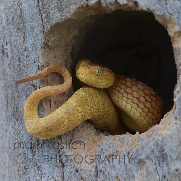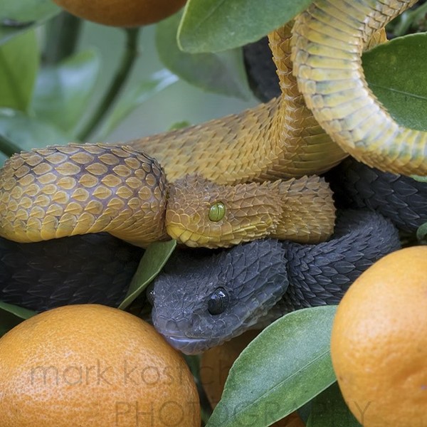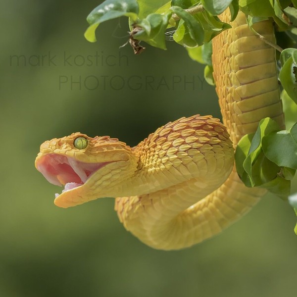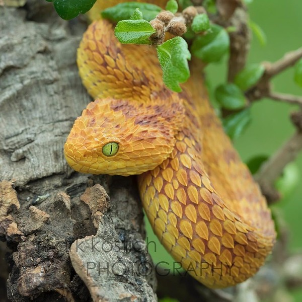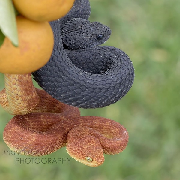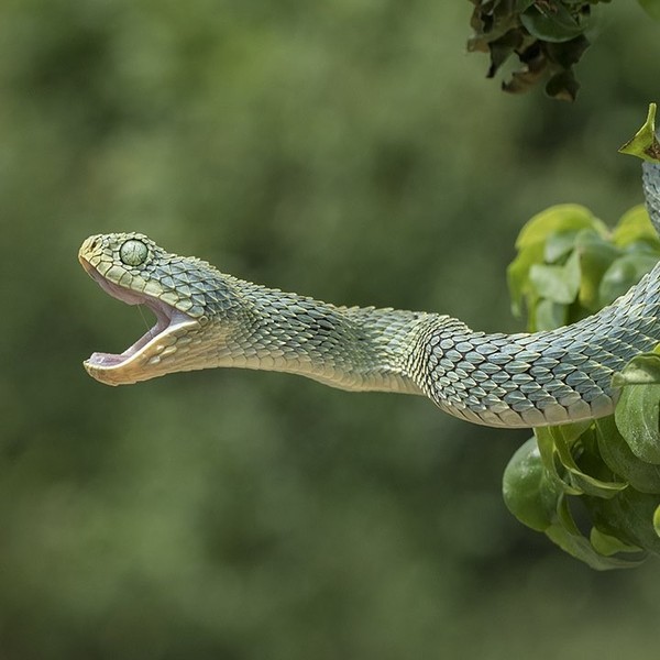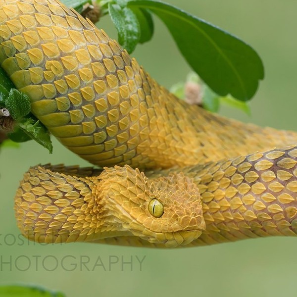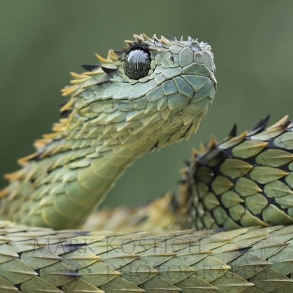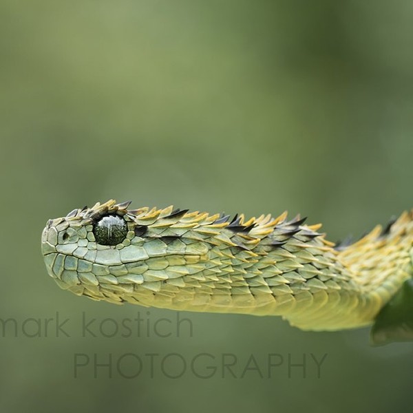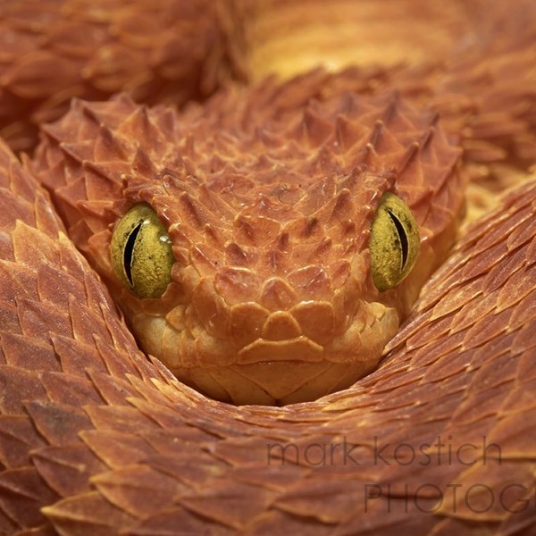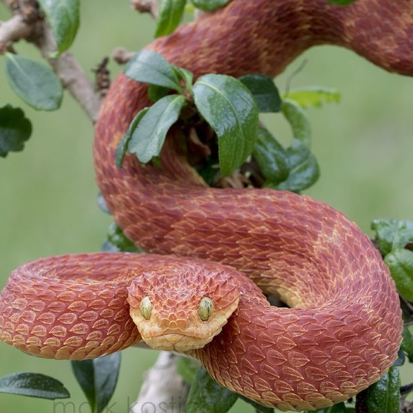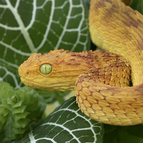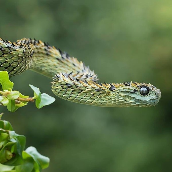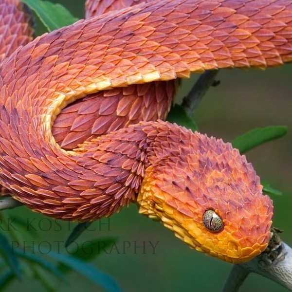 Колючая кустарниковая гадюка, а именно так учёные классифицировали данный вид, обитает в странах Центральной Африки. Форма её чешуи подчёркивает родство с ящерицами, ведь они также обладают колючками. Но главное – гамма окрасов: здесь можно найти все цвета радуги, причём одноцветных представителей практически не существует, дракончик выглядит будто на него только что нанесли градиент в графическом редакторе. Несмотря на красоту, гадюки крайне ядовиты, а их яд, при попадании в кровь человека не только парализует, но и запустит омертвение тканей. В независимости от опасностей, благодаря уникальной внешности и разнообразию окраса – африканский дракончик является одним из наиболее желанных видов для обладателей террариумов по всему миру.
