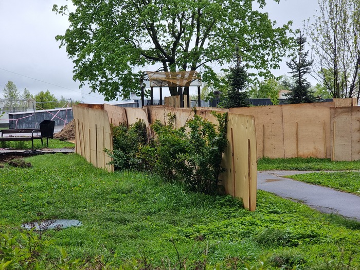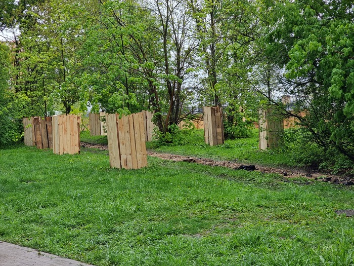 Кто-нибудь знает зачем эти кусты обнесли таким количеством забора, а именно древесины? Я так понимаю это посыл, чтобы кустик не повредить? Кустик, млять!? Вы серьёзно!? Вам кустик жалко!? Или вы целое дерево боитесь снести? И закрыли вы это всё таким количеством "кустиков", что закрытого меньше чем то, чем закрыли! Охуенно! И сколько же стоит стоит этот забор!? Млять! Т.е. неужели цена этого забора стоит этого кустика? Может я чего-то не понимаю и здесь банальное отмывание денег!? Ну смотрится очень глупо. Как же раньше то всё это делали без таких заборов для кустиков...