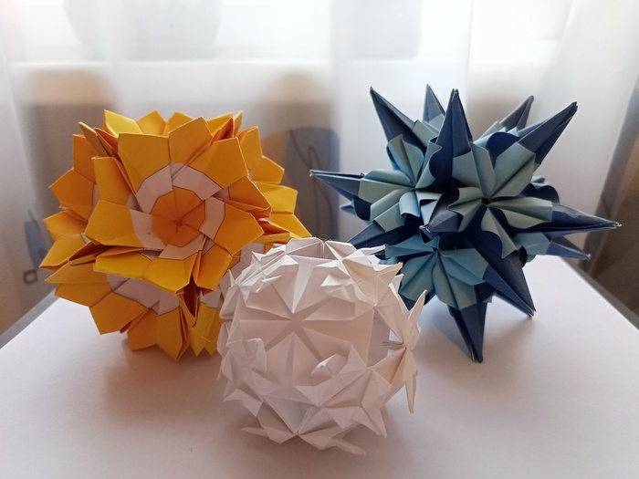 Кажется – только вчера я перешла в этом прекрасном ресурсе из «ридонли» в категорию «немного пишущих».. и опп – сегодня падает мне ачивка «5 лет»! В честь моего маленького юбилея позвольте подарить себе – и вам, друзья! ;-) – эти прекрасные бумажные «цветы»-шары, которые создает мой сын из обычной бумаги. Это «кусудамы» - модульные оригами. Не очень распространенное у нас хобби, и офигительно трудоемкий процесс. Меня бы на это не хватило)) Но результат стоит потраченных усилий, как мне кажется)