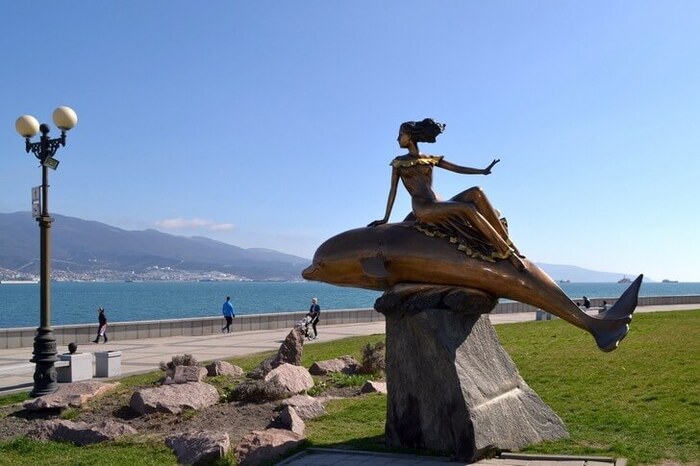 «Дельфин и русалка» — неофициальное название изваяние, на самом деле оно носит имя «Девушка на дельфине». Изящный монумент украсил городскую набережную в 2007 году. Сразу же после установки появилось поверье, что если потереть спину животному, то весь следующий год будет удачным и счастливым. Композиция изготовлена из металла и укреплена на каменном постаменте неровной формы.
