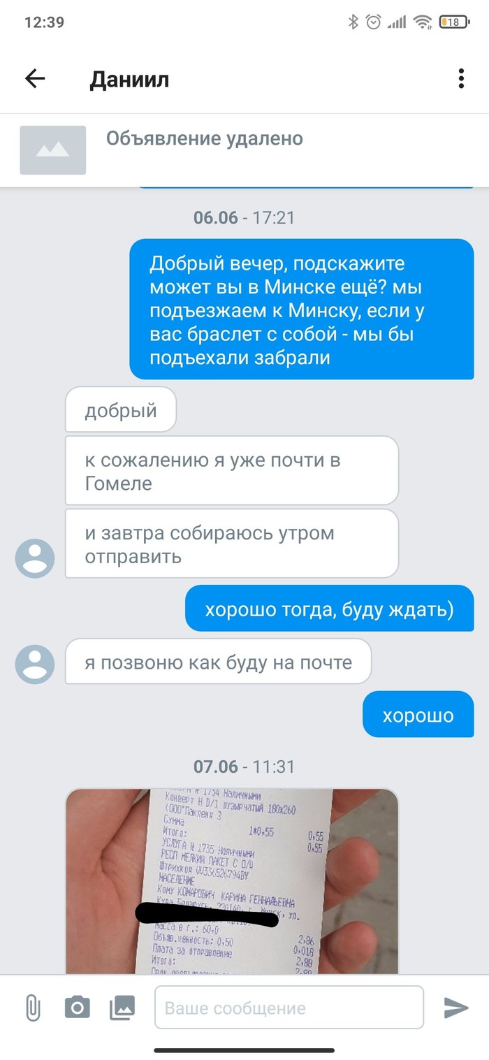 P.S. после этого видела ещё пару объявлений на площадке Куфар в г. Гомель с других аккаунтов, также продавали браслеты по низкой цене с рекламными фото. Есть предположение, что так ребята решили заработать - перепродавая китайские браслеты в 10 раз дороже.