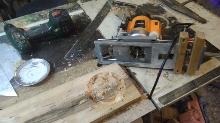 Прямой пазовой фрезой с помощью фрезерного циркуля выбрал углубление под вкладыш, обычное кофейное блюдце. Так я посчитал что мыть будет удобнее.