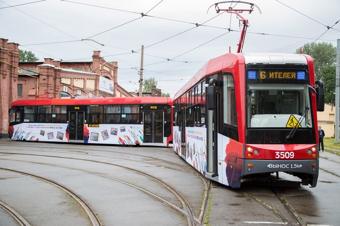В Санкт-Петербурге уже с начала появления трамвая существует редкая для России практика: маршруту присваивается не только номер, но и своё сочетание маршрутных огней. Софиты устанавливаются по бокам таблички с номером маршрута. Изначально эта практика была введена, чтобы стрелочник мог издалека распознать маршрут и перевести стрелку на путях. Однако позже, когда ручной перевод исчез, софиты остались, а ожидающие на остановке пассажиры до сих пор могут идентифицировать номер издалека даже при плохой погоде. Для обозначения используются 5 цветов: белый, синий, красный, зелёный и жёлтый, поэтому цветовые обозначения маршрутов могут повторяться. Во время блокады Ленинграда для обозначения маршрутов использовались только софитные огни, таблички были сняты.