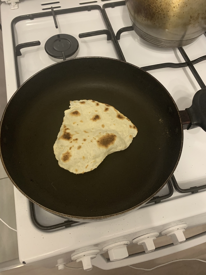 Готовое, отдохнувшее тесто делим на примерно одинаковые комочки. Грамм по 50-60, если есть желание заморочиться с весами, но можно и на глаз. И каждый комочек раскатываем в лепешку, лучше тонко - 1-2 мм. Накатали 6-8 лепешек - можно начинать жарить - остальное докатаете по ходу. Готовятся лепешки очень быстро; на сухой сковороде на среднем огне до золотистых подпалин с обеих сторон. Лично я беру две блинные сковородки - процесс идёт очень прытко. Готовые лепешки складывайте в полотенце, чтобы они остались мягкими. Все. Лепехи ждут картохи.