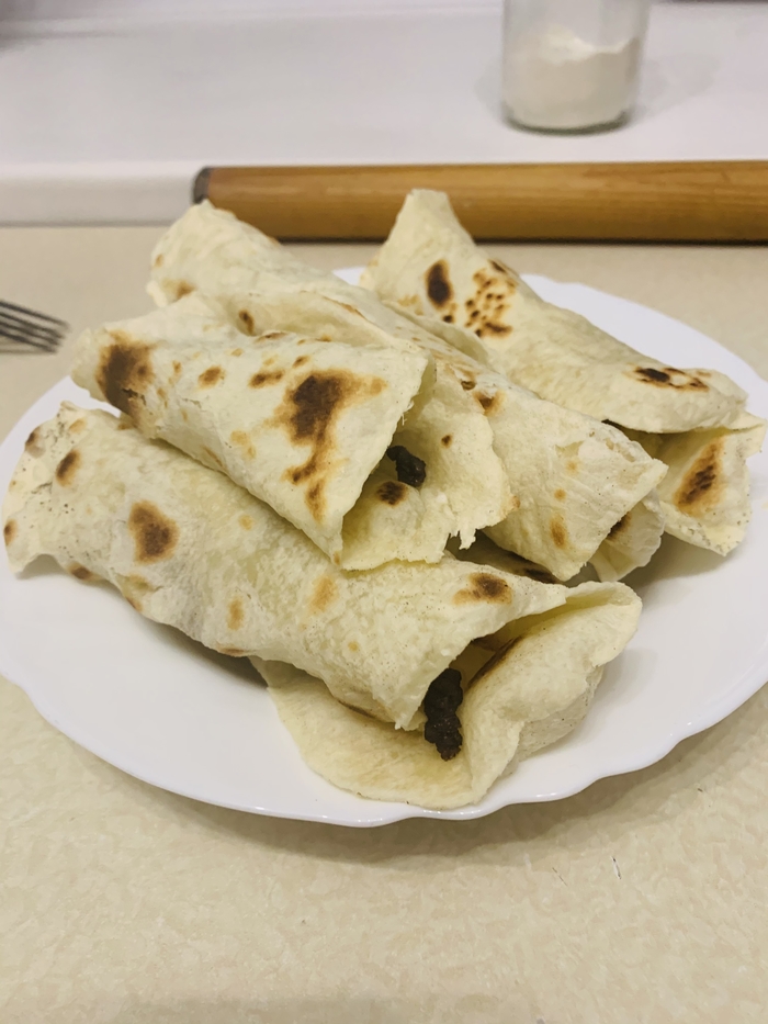 Из указанного количества ингредиентов получится примерно 16-18 лепёшек, зависит, конечно, от их диаметра и толщины вашей раскатки. У меня получилось 18 диаметром +/- 15 см.