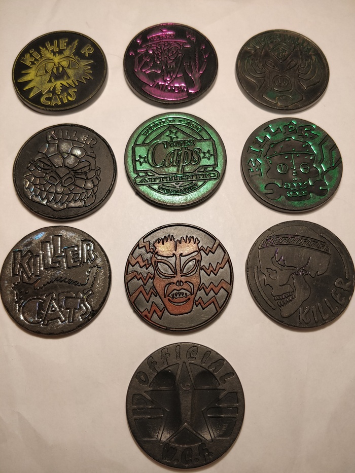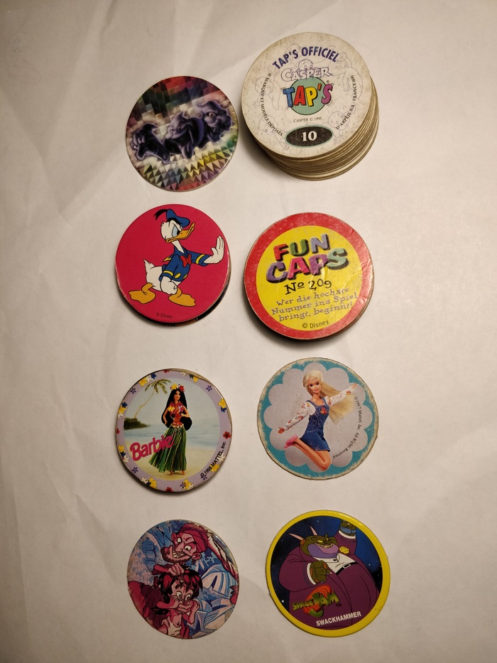 Давненько хотел разобрать коробку с грудой кэпсов и бит, и на этих новогодних каникулах руки наконец-то дошли до дела. Так что буду хвастаться, чего уж там :) Вас ждёт гора картонных, пластиковых и металлических кругляшей на разную тематику родом из 90-х: фильмы, мультики, игры, эротика.