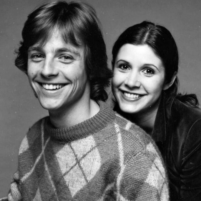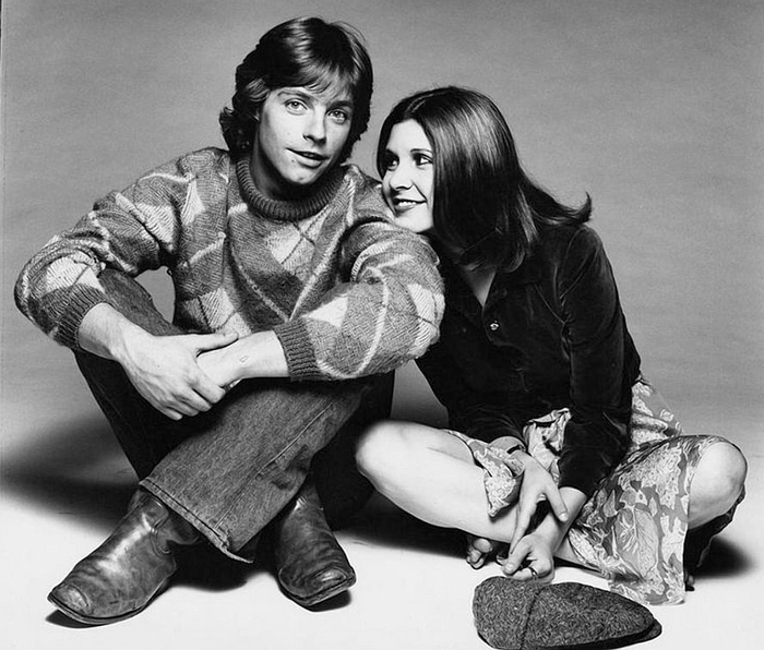 Гранд-мофф Таркин (Питер Кушинг), принцесса Лея (Кэрри Фишер) и повелитель всея Галактики Джордж Лукас во время съёмок фильма "Звёздные войны. Эпизод IV: Новая надежда". 1977 год.