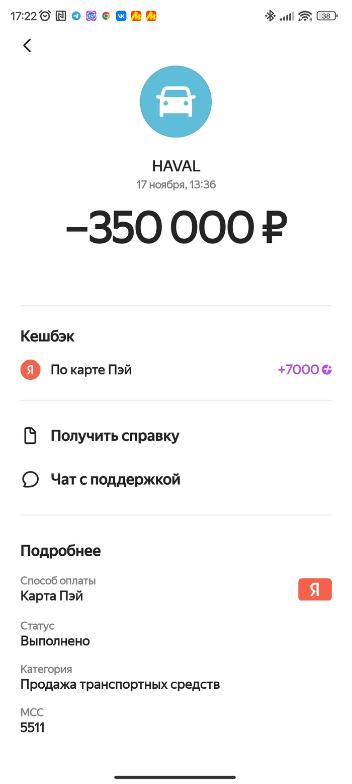 Итак, пройдя ад выбора авто остановился я на покупке Haval f7, выбрал вариант рассрочки, когда надо оплатить в кассе 70% а остальное на 4 года. Плачу, естественно, картой Тинькофф с их премиум-пакетом, т.к. у них ограничение с ним кешбека в 30 тыс в месяц. Условия вроде бы ясные: выбрал категории с повышенным процентом, а за ВСЕ остальные покупки — стопудовый 1%. Ну, ВСЕ, Карл! Я наивно полагал что покупка автомобиля — это покупка. Как же я ошибался.