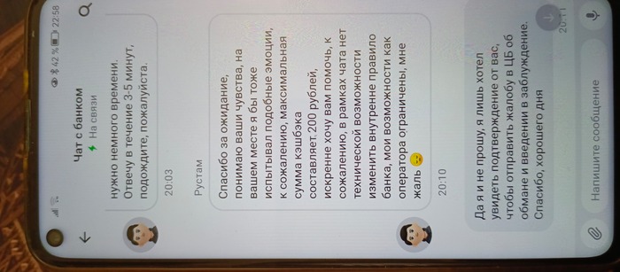 В приложении Альфа-Банка не проучилось сделать скриншоты, сделал фото переписки другим телефоном.