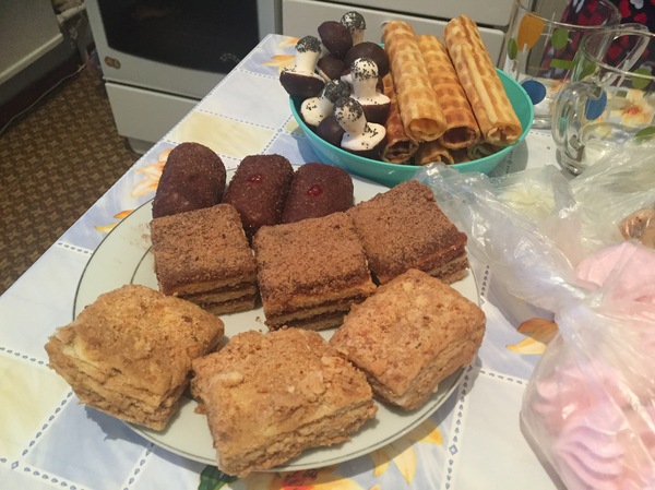 Есть русские магазины! Там мой любимый медовик ! Только очень дорого 1 кусочек стоит 400-600₽ Моя жизнь в России была 1 день 1 медовик ^^