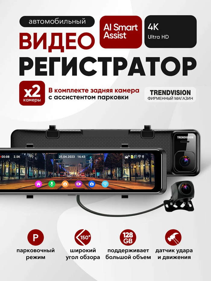 TrendVision MR-1100 4K AI Smart Assist — это видеорегистратор в виде зеркала заднего вида, предлагающий продвинутый набор функций и возможностей для современной езды.