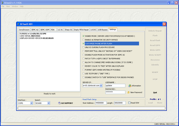 На боксе ставим переключатель в положение SE, подключаем к компьютеру. Запускаем программу SETool2. На последней вкладке расставляем галочки как на скриншоте.