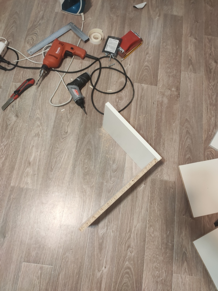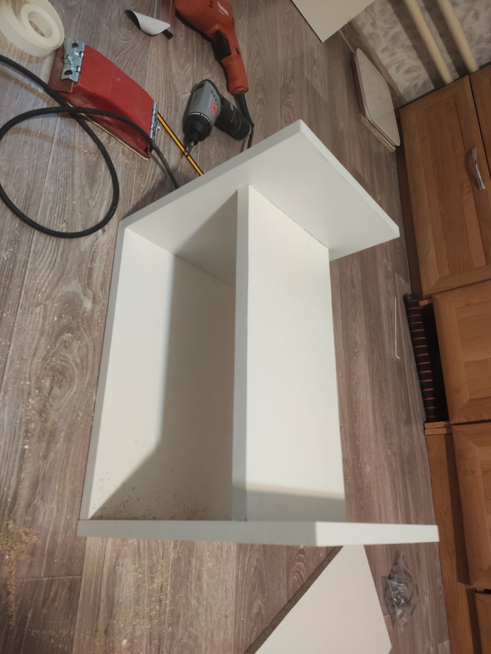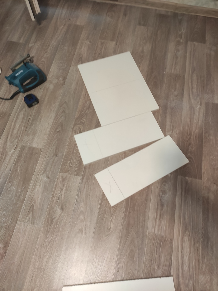 Дальше уже оставалась совсем ерунда, подогнать ЛДСП под нужные размеры. Саму ламинашку брал, опять же, в леруа.