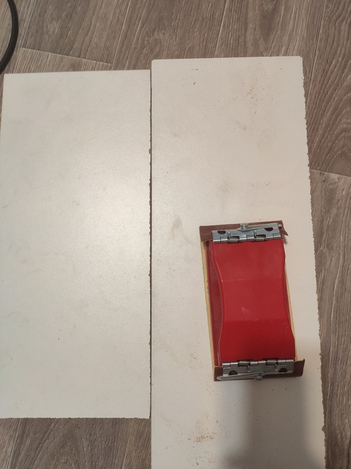 Чтобы хоть как-то выровнять срез, прикладываю детали друг к другу и шлифую наждачной бумагой.
