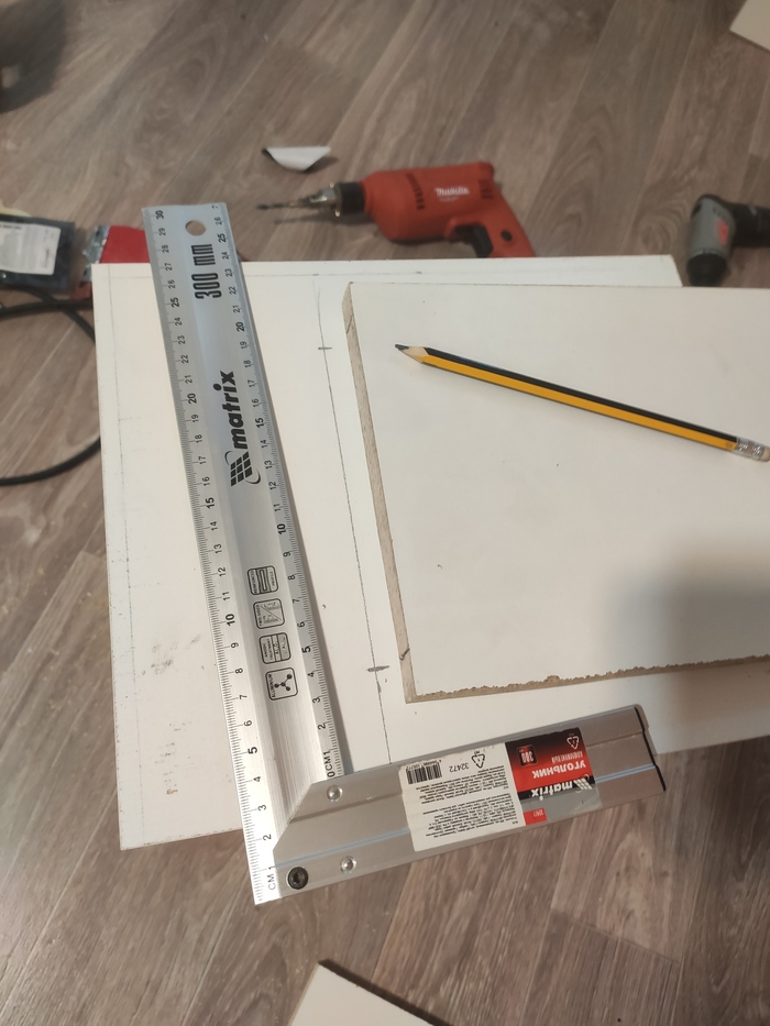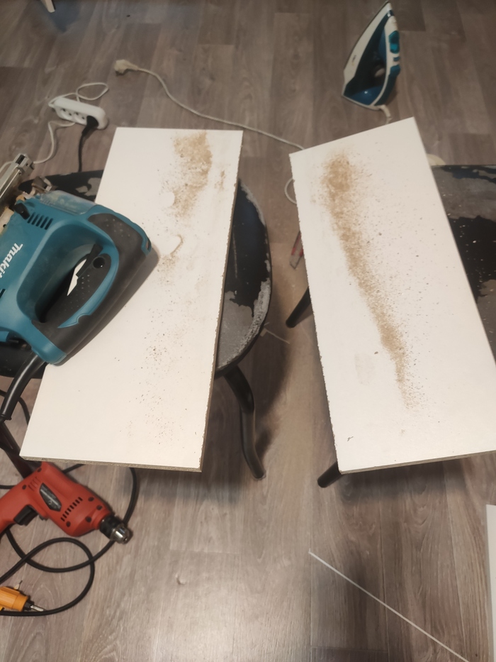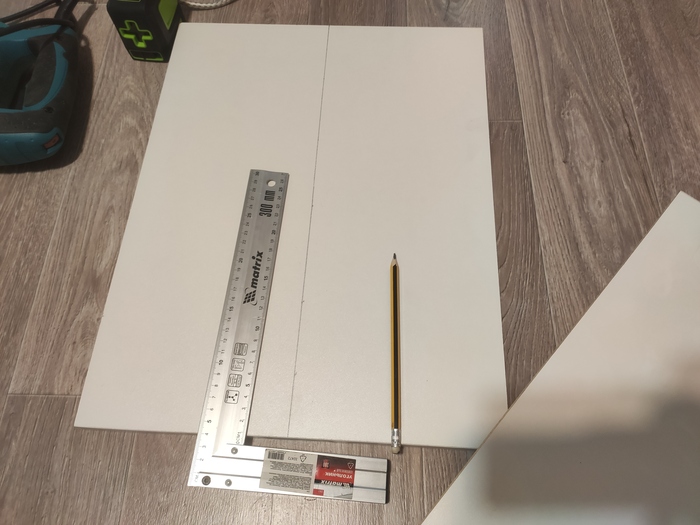 Пилю пополам детали ЛДСП в соответствии с разметкой.
