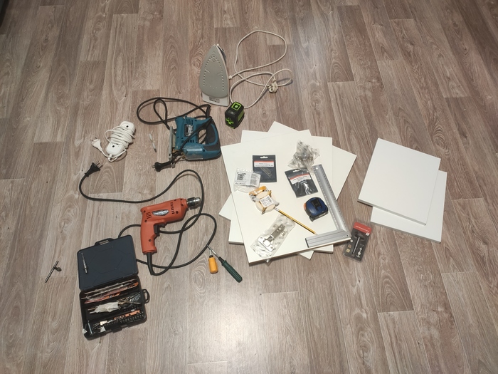 Вот такой стартовый набор получился (справа - докупленные и уже распиленные ЛДСП).