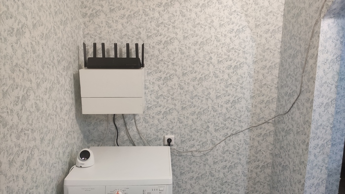 Ну и все подключаем, радуемся) Крепеж витой пары сделан временно, потом во время ремонта все уберется, как положено. Учитывая вопросы из комментариев, камера будет установлена в подъезде, тут она временно.
