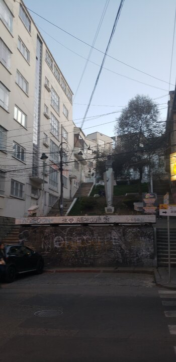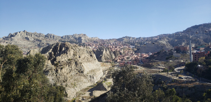 Ближе к обеду решил прогуляться немного под городу и за одно подняться в Эль Альто. Для этого потребовалось дойти до канатной дороги. Впервые попробовал проехать на канатке в Ла Пасе. Ощущения спорные. При отходе кабинки от станции и при приближении чувствуется большое ускорение, а когда кабинке минует опору она начинант неприятно вибрировать. На большой высоте не очень приятное ощущение.