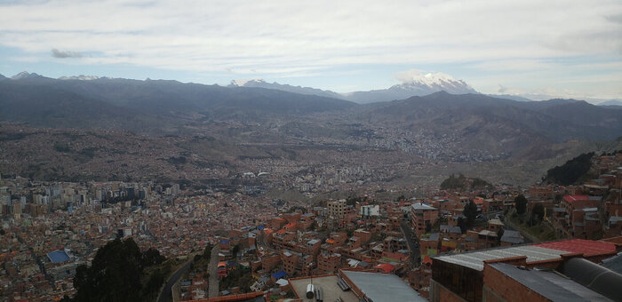 В Кордильерах Реал, к востоку от города, находится заснеженная гора Иллимани. Возможно что это она и есть.