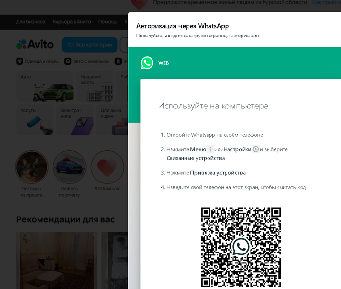 Сходу предлагает авторизоваться через WhatsApp через QR