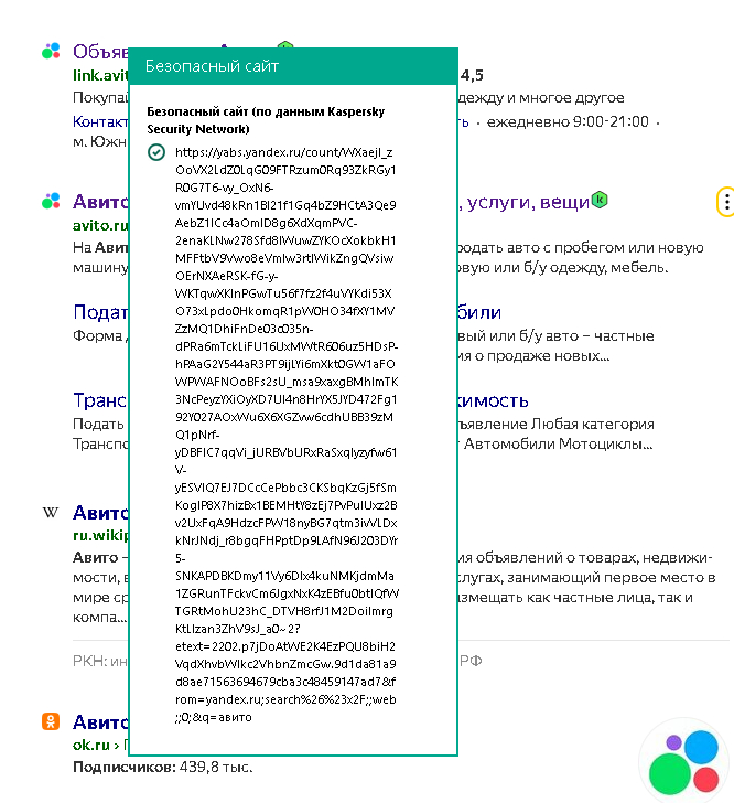 При запросе авито - яндекс выдал первым сайт мошенников, и касперский одобряет ))