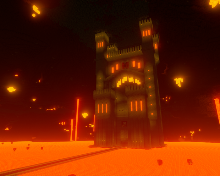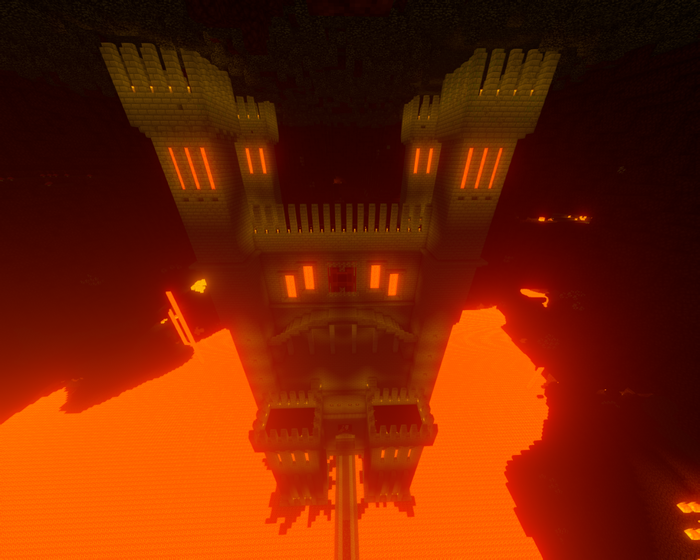 Вот и завершилась работа над замком Инферно из Героев Меча и Магии III. Замок вырос на глади лавового озера и простирается до верхнего бэдрока подземного мира. В работе были использованы жаростойкие кирпичи произведённые в печах верхнего мира. Для быстрой доставки которого в подвале замка был сооружён портал, а строители получили возможность пользоваться услугами креативного режима, дабы воздвигнуть сей монументальный памятник инфернального зодчества.