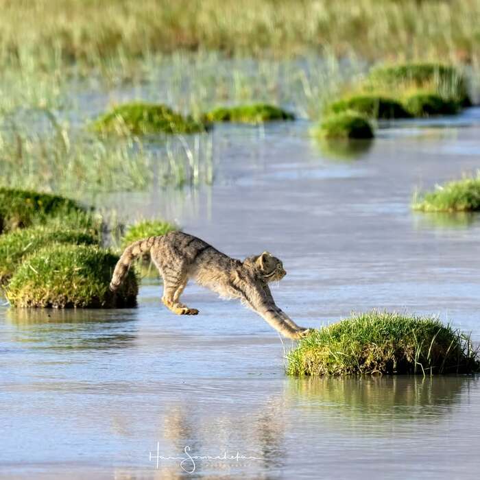 Но в дикой природе вы, скорее всего, манула бы даже не заметили. Дикий кот великолепно маскируется и во время опасности лежит неподвижно, как камень, потому что шансов удрать на коротких манульих лапках мало. Можно пройти мимо и не заметить, здесь нужен опытный взгляд специалиста, который натренирован на изучение манулов.