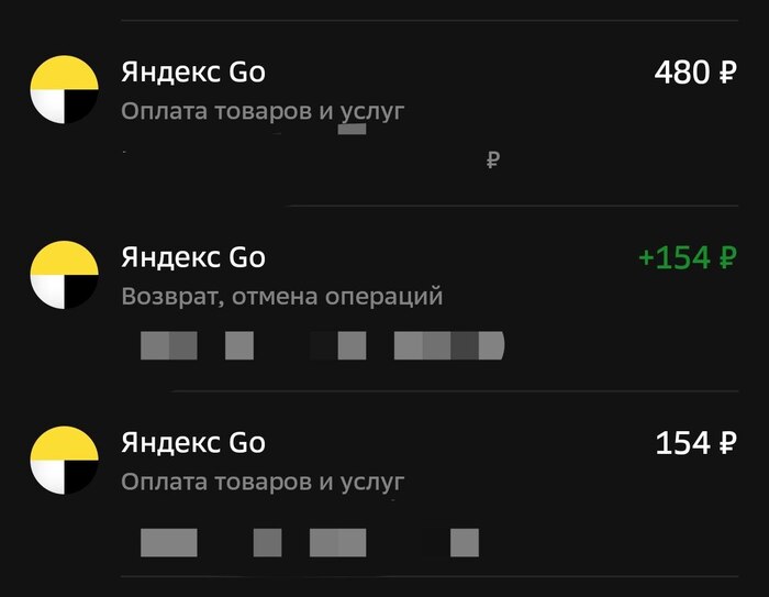 Пока ехал вернули 154р, как доехал, вышел из машины и списалось 480р, т.е. они перерасчитали стоимость как за первый вызов.
