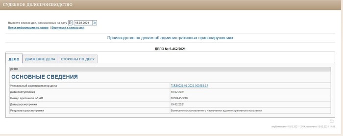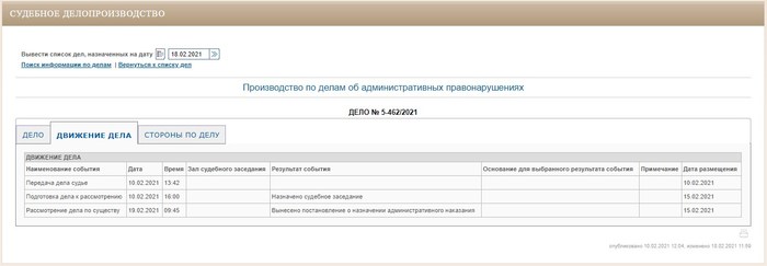 Теперь у них на сайте, по делу, которое будет слушаться только завтра, сегодня 18.02.2021 уже вынесен приговор!