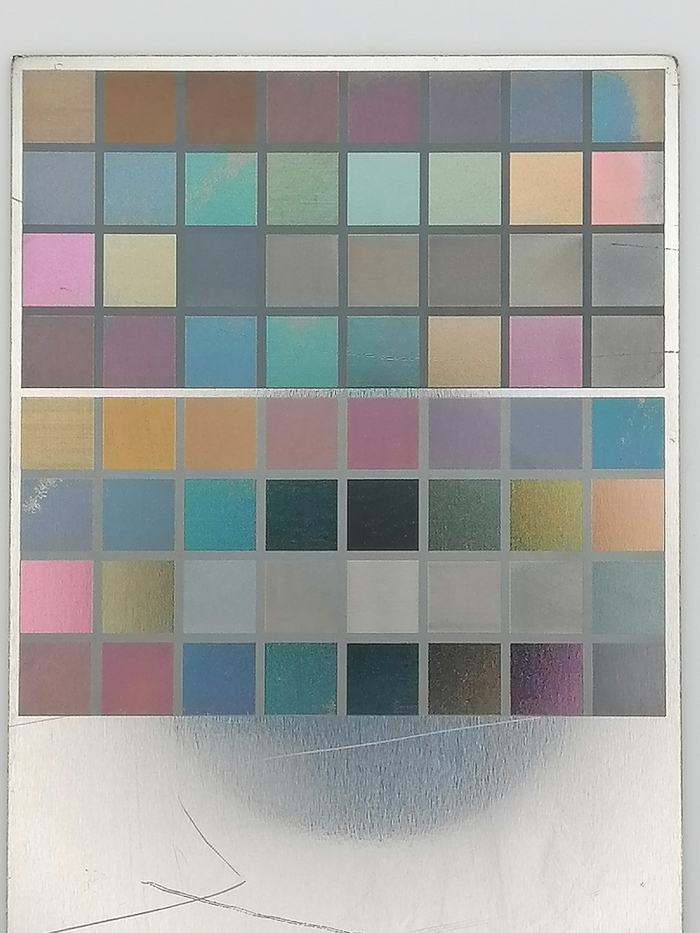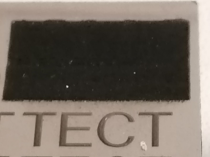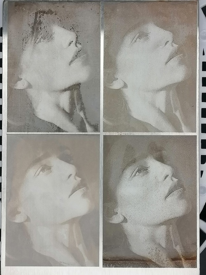 Решив, что ссаться от радости в штаны радоваться преждевременно, решил эксперимент повторить, отредактировав режим нанесения подложки для исключения «полосатости». Для большей чистоты эксперимента нанес маркировку на 4 разных настроенных режимах на одну заготовку и отправил мариноваться на неделю все в тот же «батин суп».