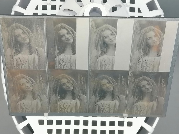 Ошибка, само собой, была выявлена, правильный режим выбран, яркость и контрастность настроена, а тестовая пластина отправлена вариться в «батин суп».