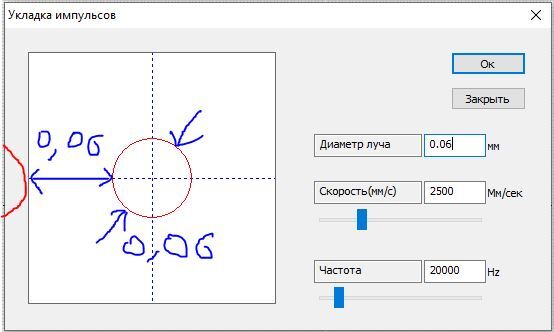 В качестве небольшого отступления: при гравировке/маркировке лазером векторных изображений требуется настроить 5 параметров: скорость лазера, мощность, частоту импульсов, ширину импульса (на более простых маркираторах данный параметр не настраивается) и плотность заливки.