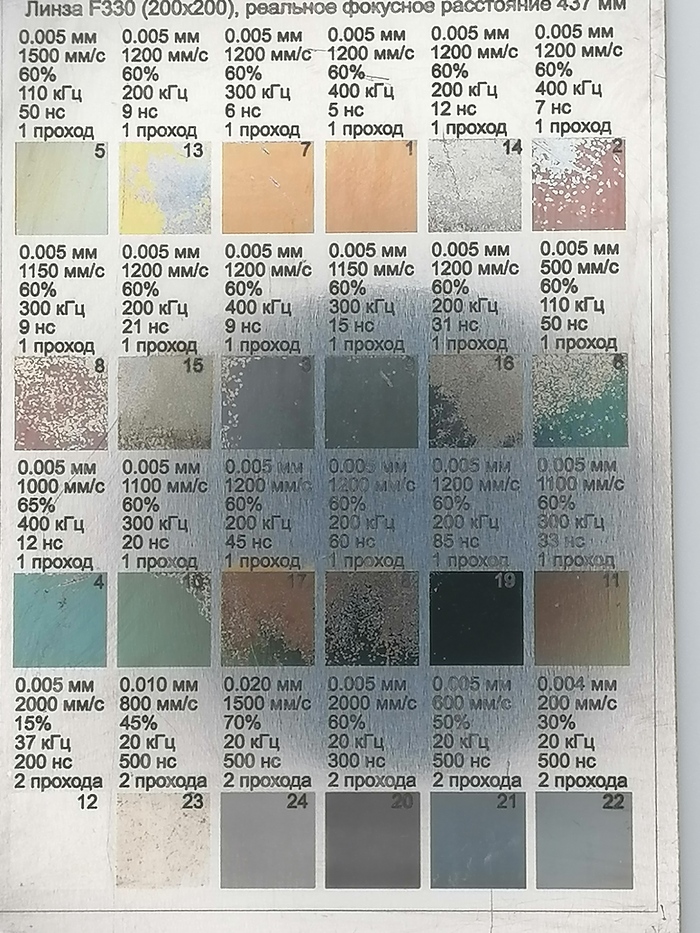 Начиная августа 2023 года было потрачено много времени и материала на поиск режима гравировки/маркировки AISI 430 (12Х17), чтобы этот всратый материал не начинал ржаветь. А при цветной маркировке это происходило даже на воздухе, при черной - во влажной среде.