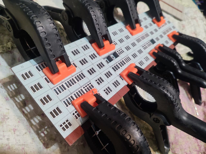 Сама склейка не снималась, но происходила так-же как и в других проектах. Установка крыши и дна для удержания геометрии и утягивание с помощью струбцин и канцелярских резинок.