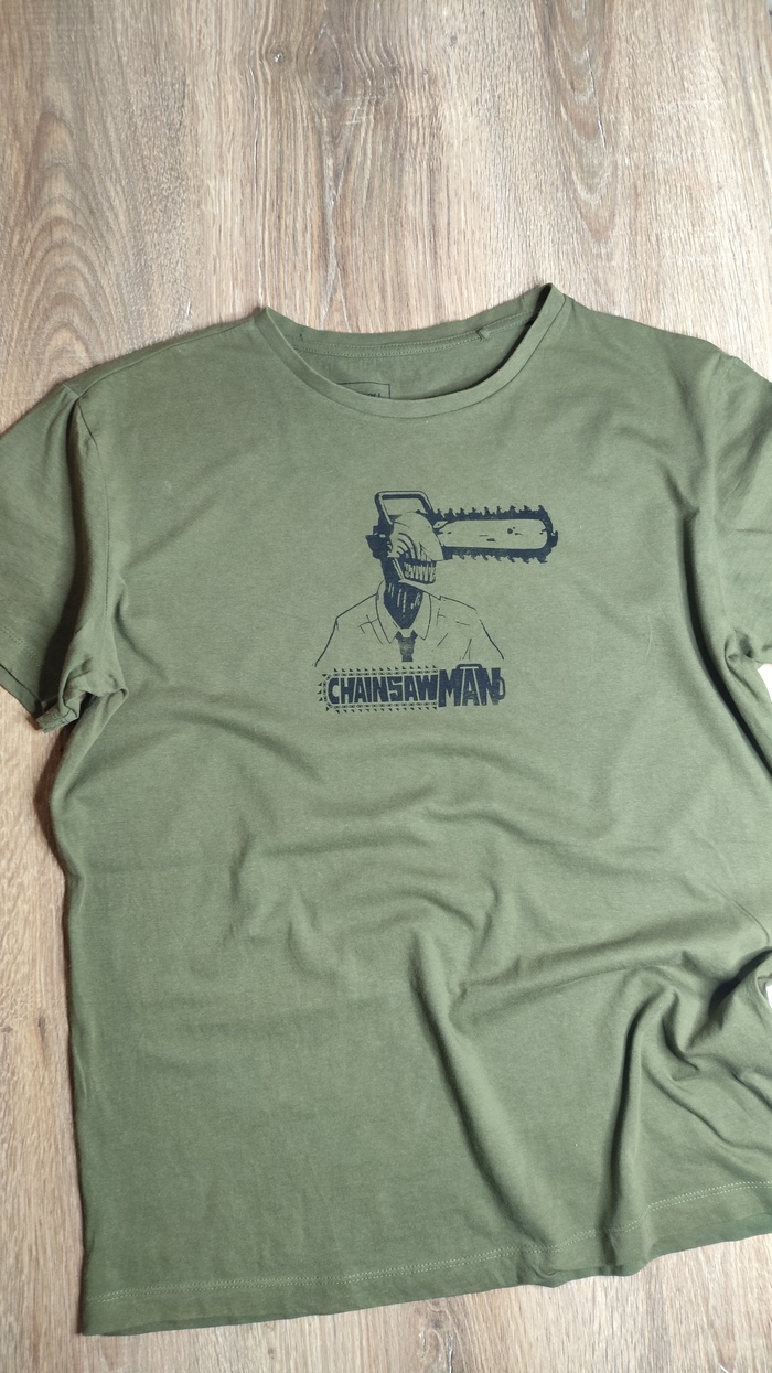 Всё-таки на каждый материал краска ложится по-разному. Например, на серой хб майке, краска не идеально прилипает. Похоже, что мелкий ворс мешает, т.к. майка уже не новая.