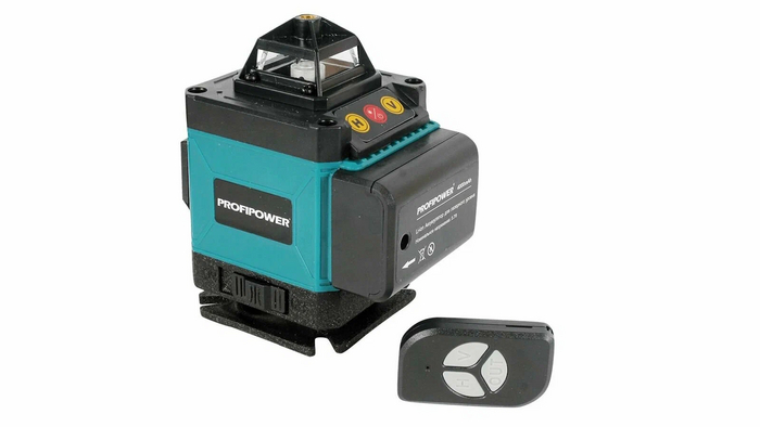 На шестом месте модель от марки Profy Power. Она напоминает предыдущую модель по внешнему виду и функциональности. Нивелир проецирует четыре лазерных луча на 360°, создавая пересечения под углом 90°.