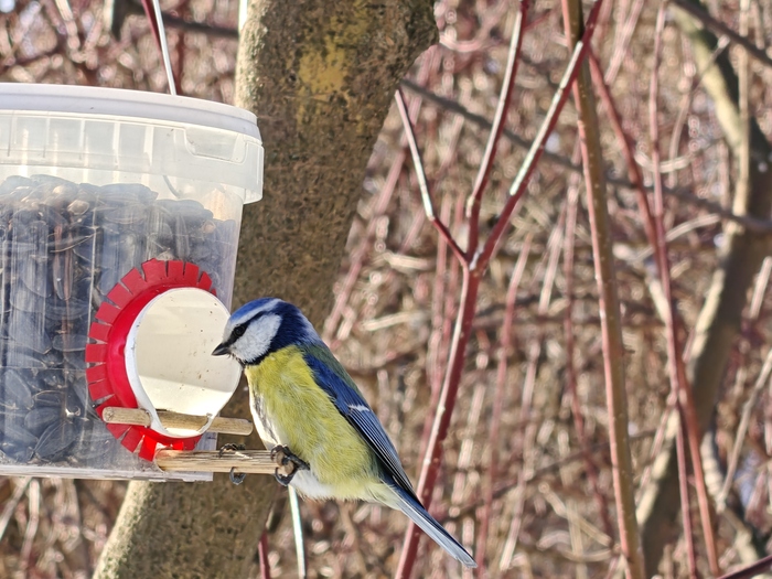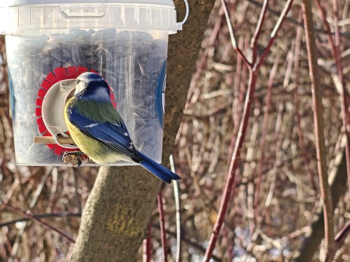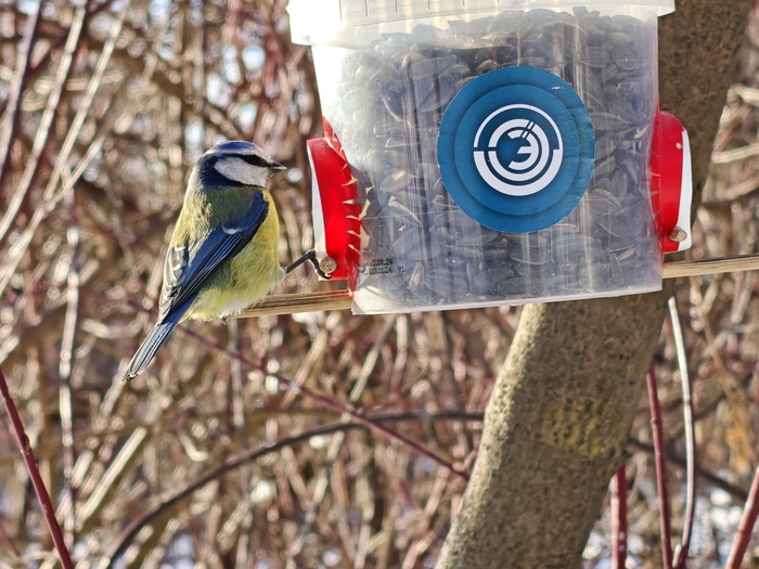 Когда мы пришли на место, то сразу заметили, что кормушки были полны пернатых гостей. Особенно много было лазоревок. Они ловко сновали между ветвями, иногда зависая у кормушек, чтобы лучше рассмотреть, что там лежит. В отличие от них, синиц обыкновенных было меньше. Мы заметили лишь нескольких, что вели себя более осторожно, внимательно наблюдали за лазоревками и изредка подлетали к кормушке за семенами.