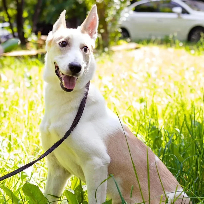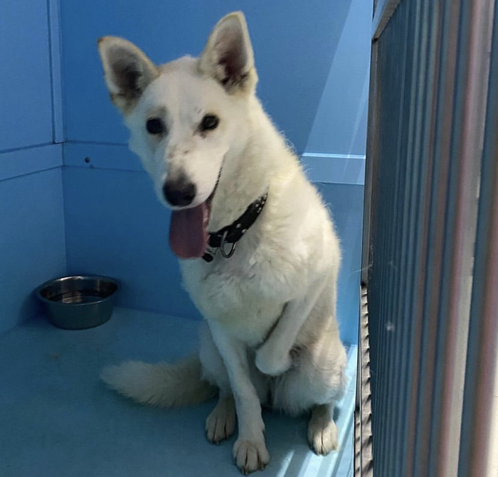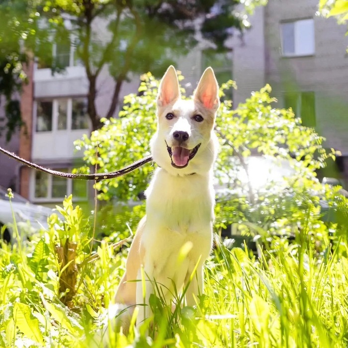 Лаечка очень красивая, белоснежная, похоже близкий метис лайки. Она очень человекоориентирована, потому ей особенно тяжело. Ведь в новых местах ее никто не знает и всем плевать на проходящую мимо собаку. А ей хочется быть с человеком, быть своей…