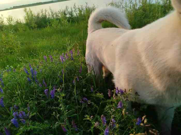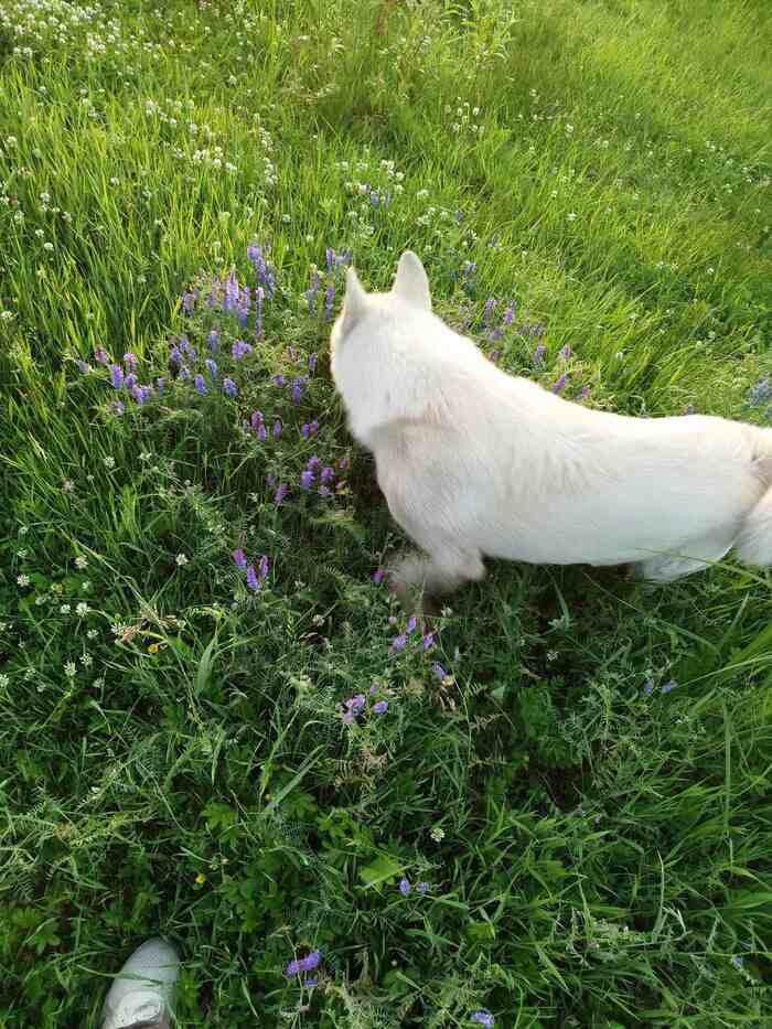 Мы прошли с ним до ледника, он нас сопровождал, каждый шорох из кустов приманивал собаку, он даже немного порыл в двух местах.Видимо инстинкт охотника берет верх)