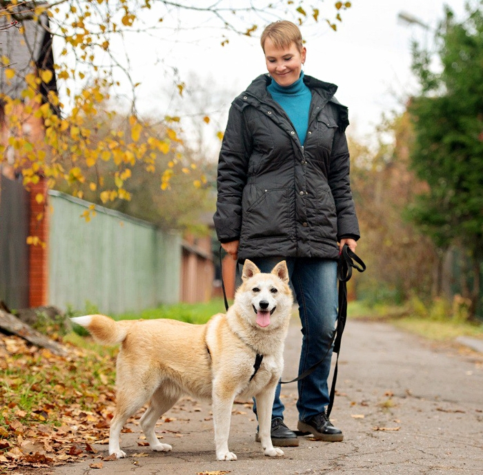 Стоячее, острое, высоко посаженное ухо. В возбужденном состоянии собака держит шею совершенно прямо, с небольшим лишь наклоном вперед, по направлении к носу. Острая, удлиненная, сухая морда, если смотреть на нее в профиль, — и широкая во лбу, в форме треугольника, если смотреть на нее сверху. Пушистый, длинный хвост, который носится лайкой, в большинстве случаев, круто свернутым в кольцо на спине и несколько на сторону, реже — серповидный, и еще реже — опущенный к низу (по волчьи). Густая, прямая, средней длины грубая псовина с густым и плотным подшерстком. Сухая тонкая кость в ногах, — сухой комок лапы, — по следу мало чем отличающиеся от волчьего. Плотное, мускулистое, несколько подобранное в паху тело. Совершенно прямая спина. Широкое, низко опущенное ребро и великолепная, сильно развитая, широкая грудь.