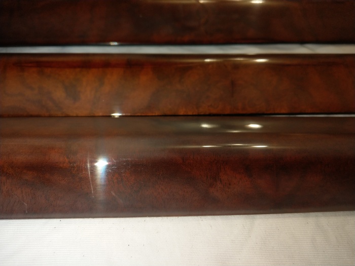 Есть ценные вставки в машину с красным деревом(шпоном) на которых побелел лак.