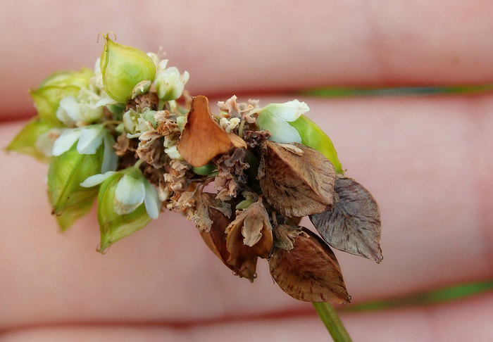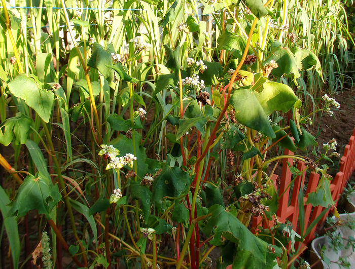 Гречиха. Посадила на пробу немного гречки, растет не плохо, даю птицам ветки с цветами и семенами.