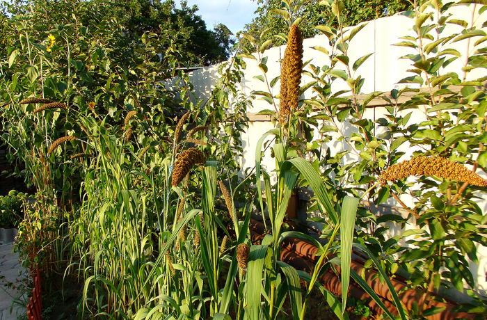 Чумиза. В этом году впервые посадила чумизу, для первого раза получилось не плохо, колоски нормальные, но могли быть и по больше. В следующем году посажу на более "богатой" почве.