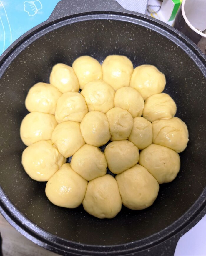 Тесто разделить на части по 75 грамм и скатать шарики. У меня получилось 11 штук.