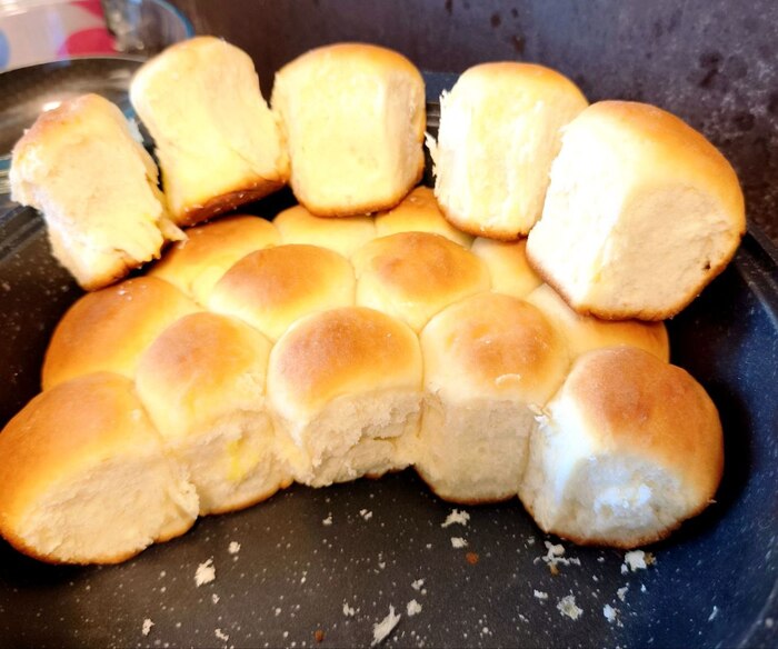 При правильном приготовлении теста, оно должно быть лёгким, не липнуть к столу и рукам. А в хлебопечке ведро будет полным. Вот как у меня.