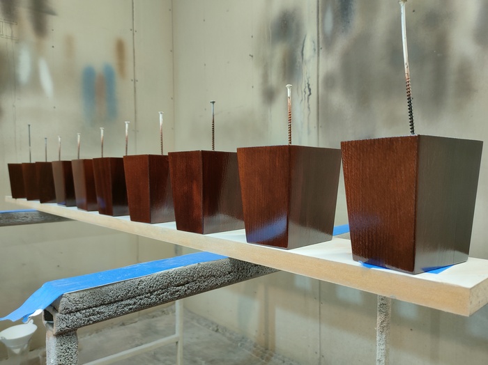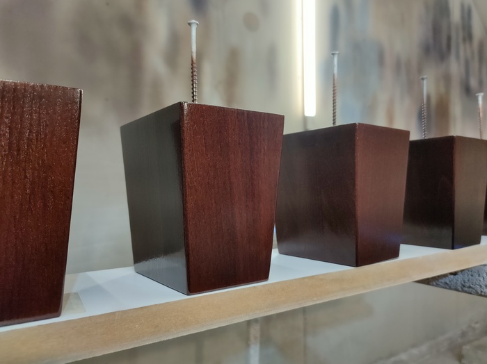 Всем привет! После вчерашнего поста@camaleona попросила примеры применения ПУ ЛКМ. Вот, буквально сегодня, красил опоры для дивана из массива бука, решил показать процесс. Отделка: морилка красный орех + лак паркетный ПУ (в роли грунта) + лак паркетный ПУ (как финишное покрытие). Да, так можно.