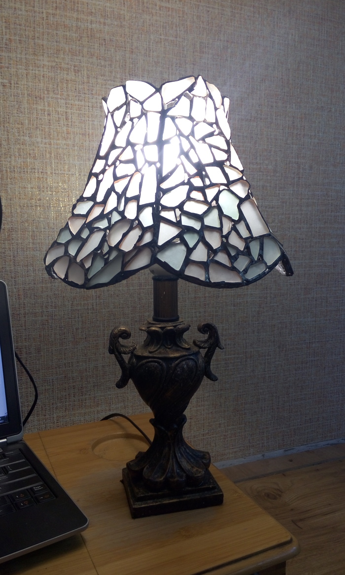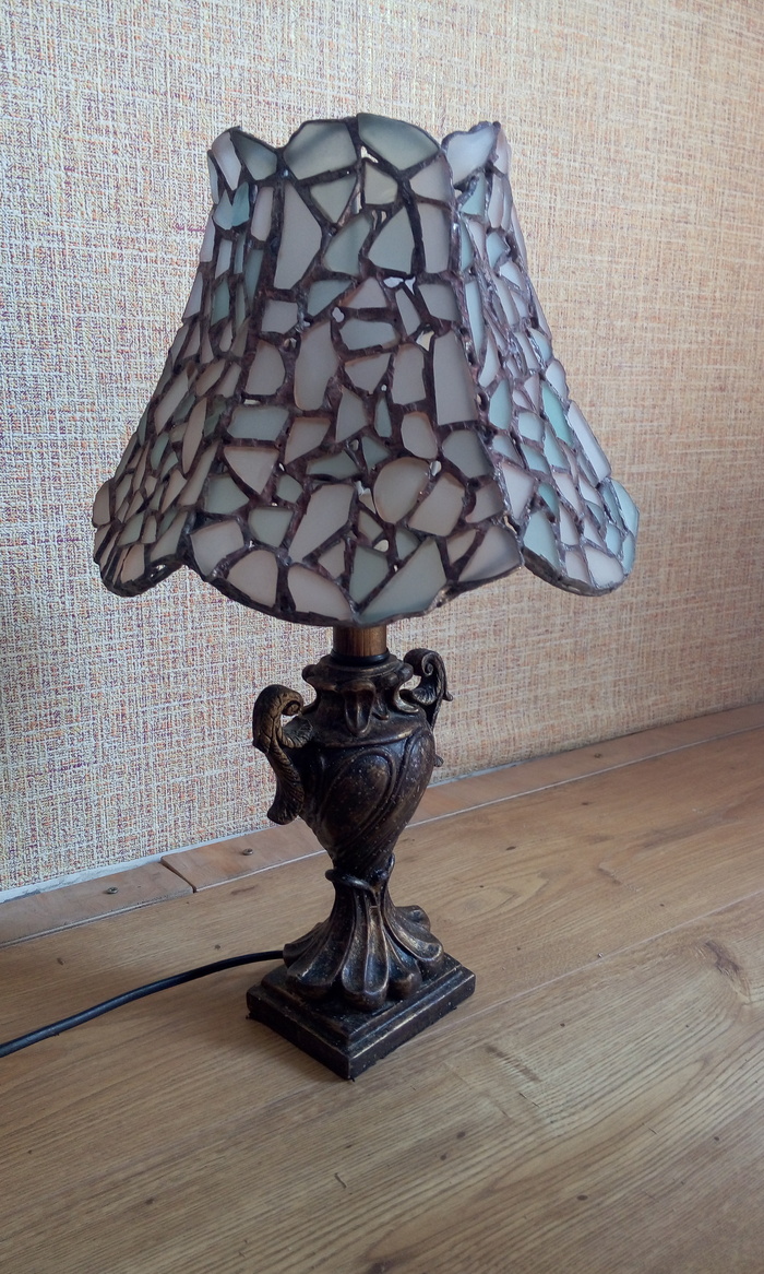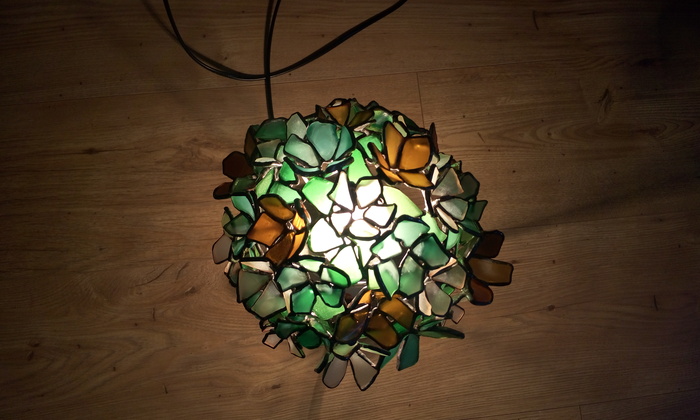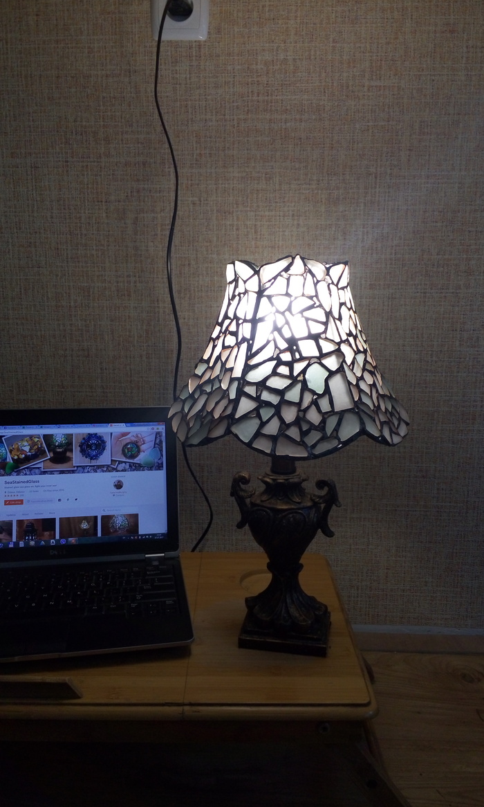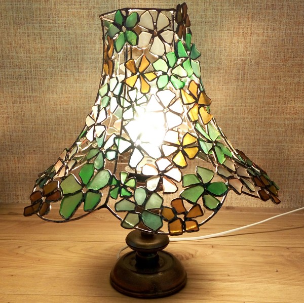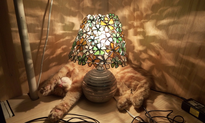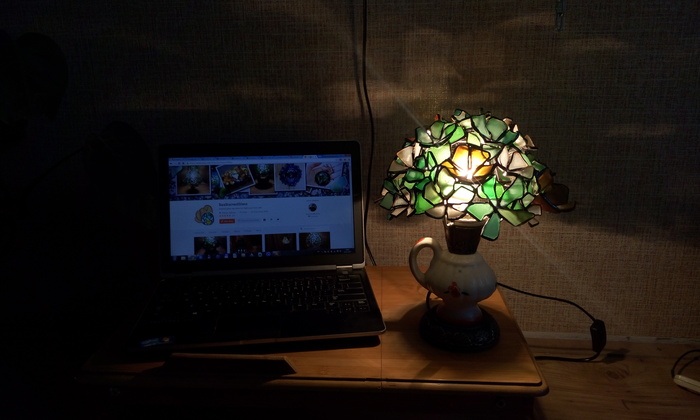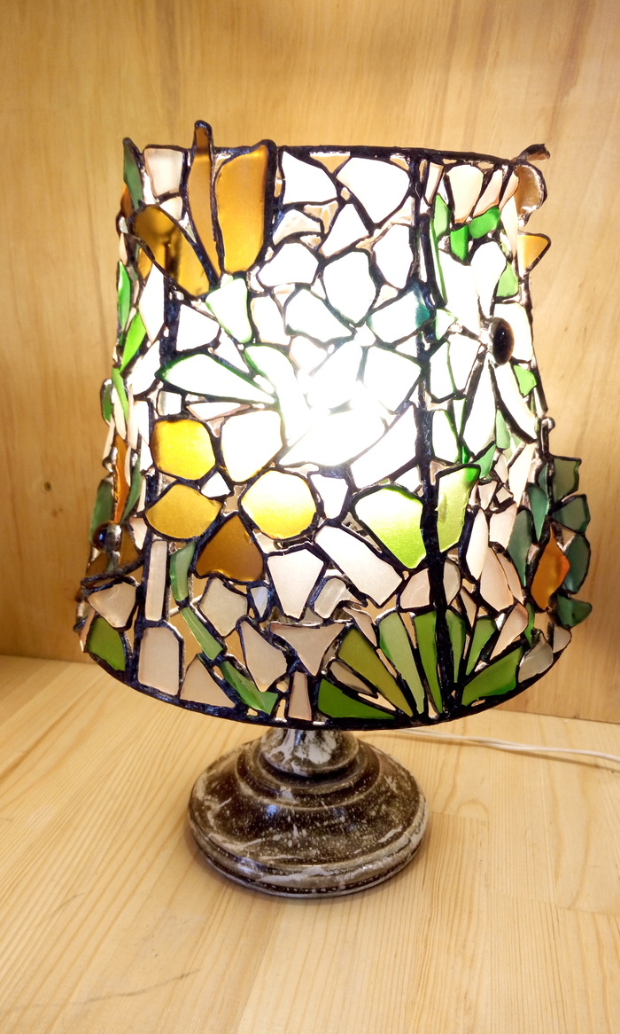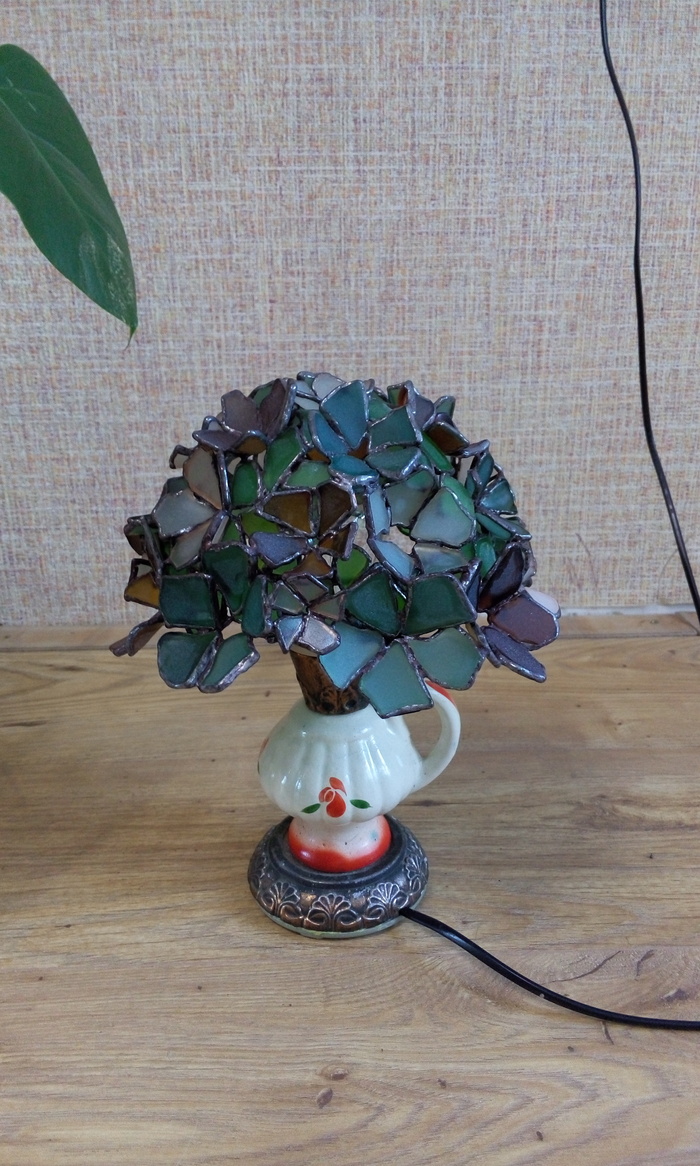 Первая проба объемного витража, 3D-букет (наконец боль-мень подходящий абажур для этой основы, уже несколько сделала под нее и в итоге соединила с другими, ибо не плясали).